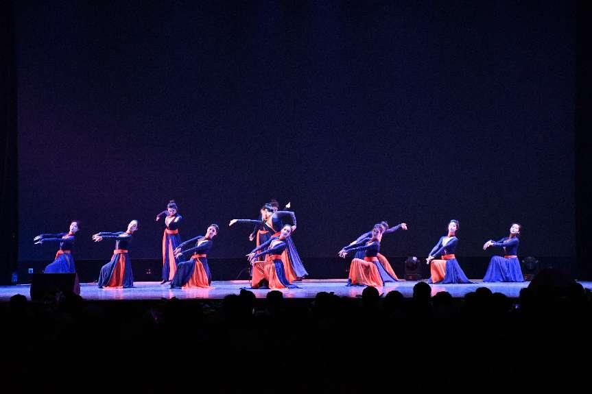 晚会呈现了多部思想精深、艺术精湛的舞蹈作品。如《大河之子》气势磅礴的表现力之下是力量与美的结合,展现出坚毅男子的形象,形成独特的艺术效果,给观众留下了深刻的印象。《鼓声响起的地方》鼓声激昂,员工们将民族民间舞中独有的技巧与表演情感完美融合,使得舞蹈动作既有力度又不失柔美,演绎出了维吾尔族独特的文化魅力。晚会还呈现了诸如《半条被子》《锦绣十八洞》《春水前溪》《纸扇书生》《淡妆浓抹总相宜》《春日》《日出》等一批经典之作,每一个节目都整齐划一、层次分明,蕴含着丰富的文化思想主旨,传递着积极向上的价值观。员工胡超的原创作品《高台舞狮》将整场晚会推向了高潮。该作品作为员工胡超的原创群舞作品,不仅体现出员工的创新思维和编创能力,更是bb贝博艾弗森官方网站坚持以习近平文化思想为引领,将传统文化引入课堂教学进行创造性转化、创新性发展的有力彰显。
