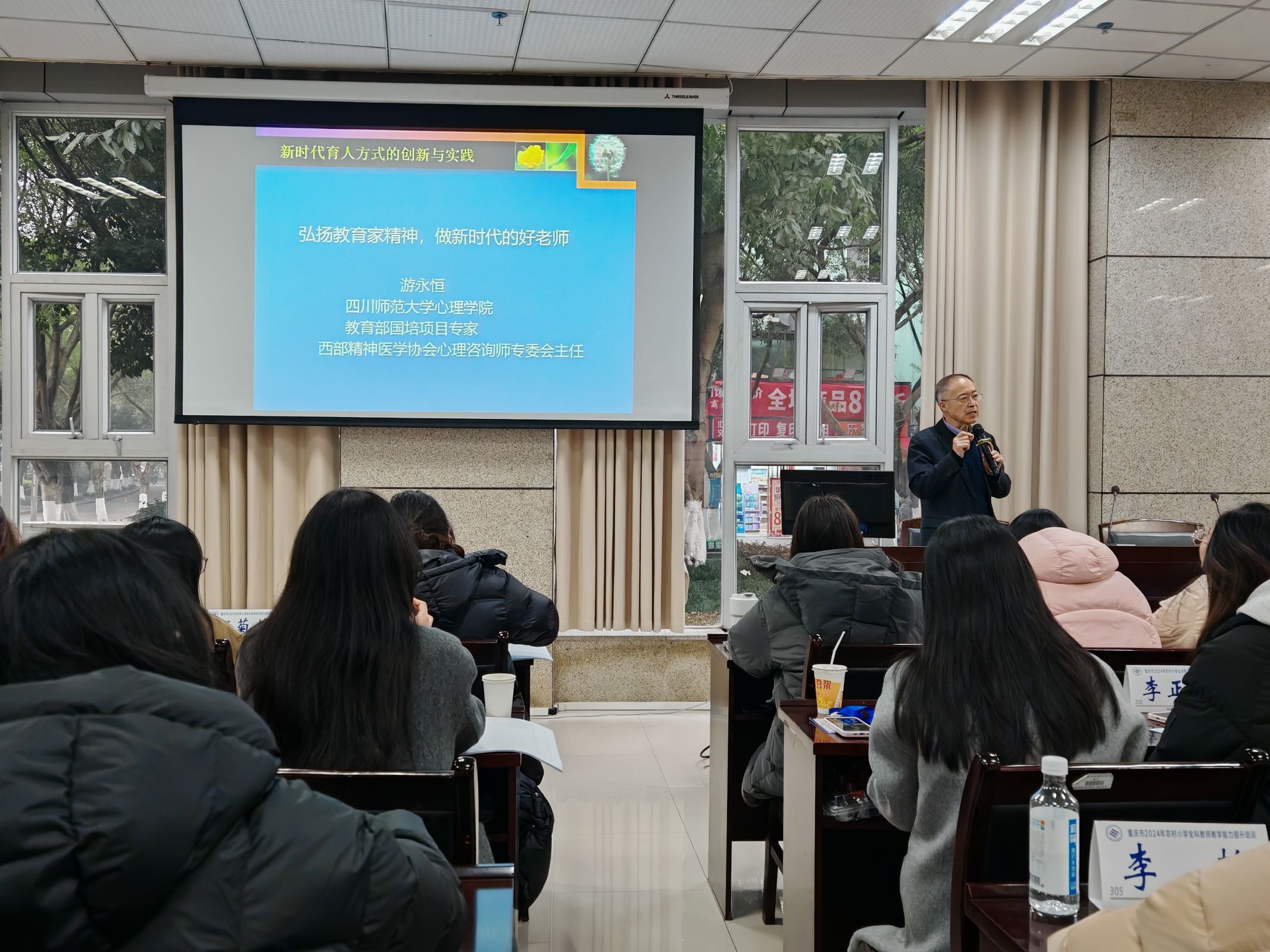开班典礼结束后,四川师范大学游永恒教授带来了题为“筑牢教育强国之基——大力弘扬教育家精神,锻造新时代好老师”的主题讲座。他以幽默风趣的风格,带领学员们打开国际视野,了解教育家精神,引导学员们敬业、乐业,以积极的价值观引领员工成长,在一线教学工作中践行教育家精神。