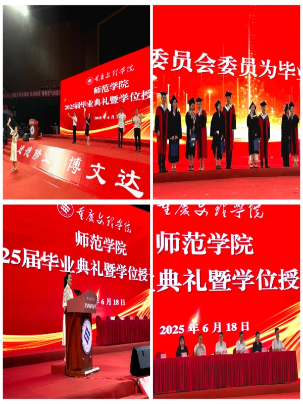 同时,学院精心筹备了精彩的节目。在周琼、宋广亮、张薇、王佳、曾筱雅、易信任六位老师的带领下,同学们倾情演绎了《New Youth》《器乐串烧》《配音秀》《陶醉了》等作品,典礼还邀请了资深艺人陈崎凡、彭新雨为毕业生们现场演唱了歌曲《有你陪着我》《成瘾》《年轻这件事永远不会结束》《干杯》歌曲。在典礼上,毕业生们表达了对母校的依恋与不舍,并纷纷表示会关注学院发展,在未来的人生道路上始终秉承师院人的精神与情怀。